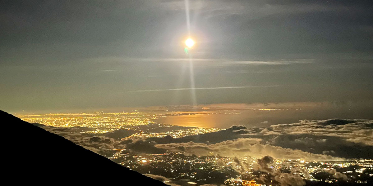 宿舎の外は駿河湾から房総半島までみえる壮大なパノラマ景色と夜景と日本で2番目の近さで見ることのできる満天の星空。